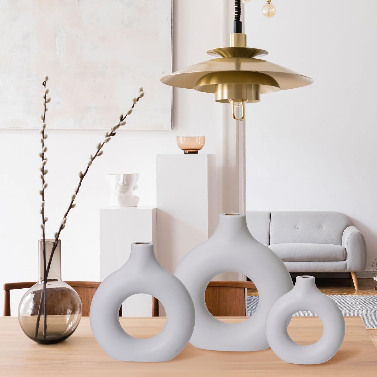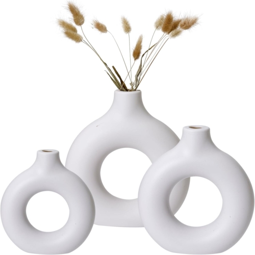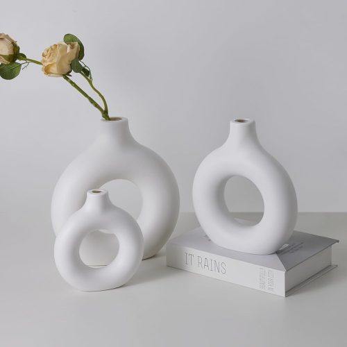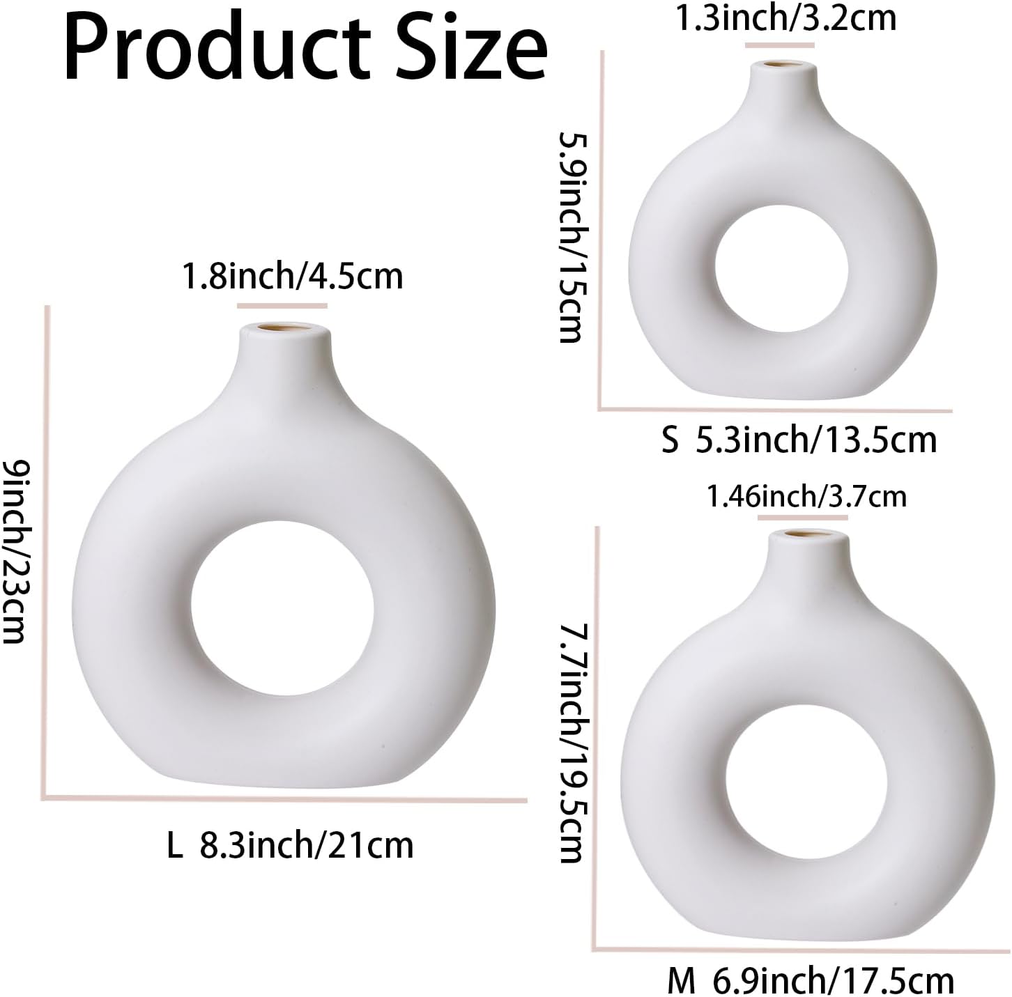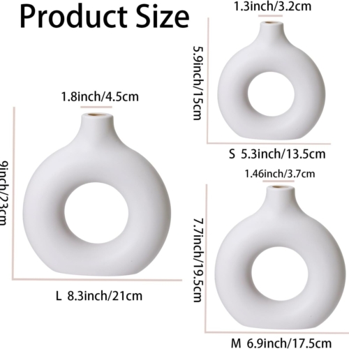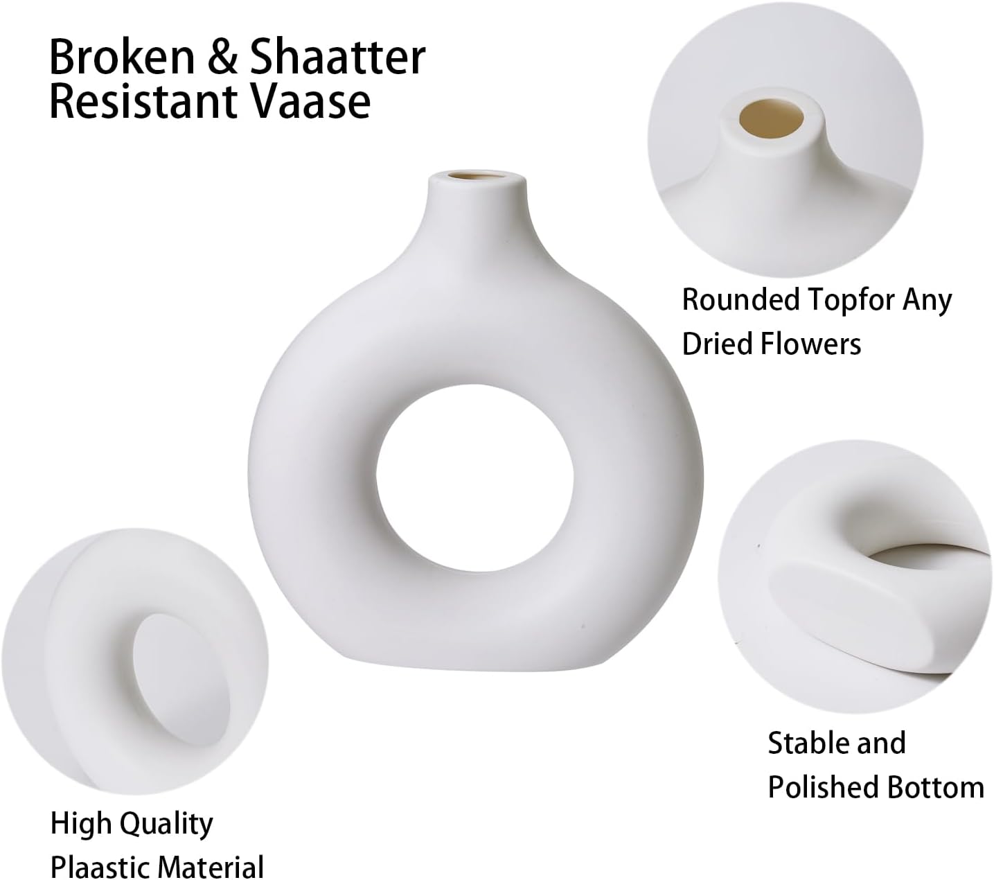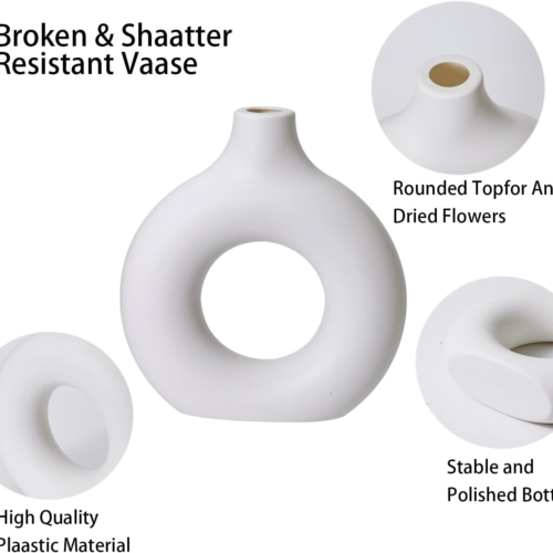 Modern Boho Design: This set includes three round, minimalist vases (5.7″, 7.9″, and 9″) with organic curves and a smooth matte-white finish, blending bohemian charm and contemporary simplicity. The varying heights create dynamic layered displays, perfect for arranging dried grasses, single stems, or airy faux blooms, adding effortless texture to shelves, tabletops, or office desks. Unbreakable Composite Plastic: Crafted from lightweight yet durable composite plastic, these vases resist chips, cracks, and shattering, making them ideal for high-traffic spaces, homes with kids or pets, or outdoor patios. Their weather-resistant material ensures longevity, whether used indoors for succulents or outdoors for seasonal decor.Boho Aesthetic: The neutral white hue and understated silhouette seamlessly transition between modern farmhouse, Scandinavian minimalist, and eclectic boho themes. Pair them with rattan accents, terracotta pots, or metallic finishes to elevate living rooms, bedrooms, dining tables, or office spaces with cohesive, curated charm.Space-Saving & Multi-Functional Display: Compact and lightweight, the small round shapes fit snugly on narrow shelves, windowsills, or desks, holding everything from fresh flowers to makeup brushes, pens, or decorative branches. Use individually for subtle flair or group all three for a striking, asymmetrical focal point. Easy-Clean: The non-porous, waterproof surface wipes clean in seconds, resisting stains from water or soil. Store effortlessly by nesting the vases inside one another to save space, or reuse them year-round for holidays, parties, and everyday decor without wear.