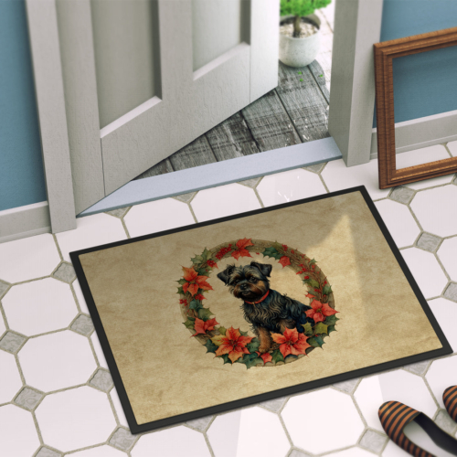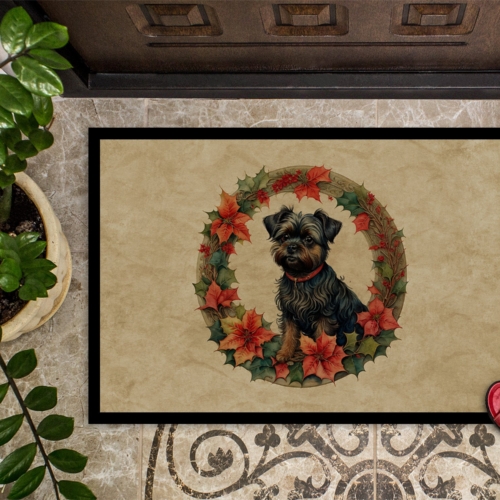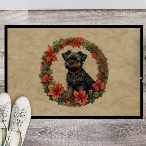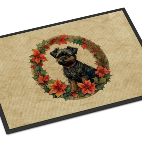 Doormat featuring breed specific Affenpinscher artwork. Celebrate Christmas with this Christmas Doormat. Welcome your guests in style with our Artwork Door Mat, designed to withstand almost any weather condition. This mat, measuring approximately 24 by 36 inches, is held together by durable black binding tape. Its top layer, composed of polyester felt, is dyed with the eye-catching image you see on the mat. A few layers below provide the mat with stability, while its rubber bottom is stamped to help prevent slipping and ensures safety. Our mat works wonderfully as both an indoor or outdoor door mat. For cleaning, simply hose it off with water or use a power washer – no need for any cleaner that produces suds. Avoid scrubbing with a brush, instead, opt for the vacuum on floor setting. Designed manufactured and printed in the USA, this mat is a perfect addition to your porch, outdoor kitchen, entryway, or any indoor space. Its unique design makes it a charming decorative rug that greets your guests and adds a stylish touch to your home decor.