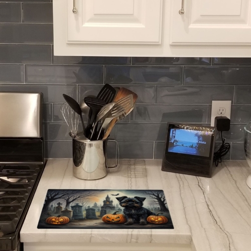 Glass Cutting Board featuring breed specific Affenpinscher artwork. Celebrate Halloween with this Halloween Cutting Board. Introduce your kitchen to the vibrant, large Decorative Glass Cutting Board from Caroline’s Treasures. Crafted from resilient tempered glass, this board is not only a utilitarian necessity but also a colorful art piece. With its generous dimensions of 15 inches in height and 12 inches in length, it offers ample space for all your cutting needs. Every piece showcases captivating artwork from distinguished artists, bringing an aesthetic edge to your kitchen. Beyond its attractive design, this cutting board ensures your countertop stays pristine and unscathed, owing to its heat-resistant properties. Engineered with user convenience in mind, it features non-skid feet for stability, and rounded corners for additional safety. Its robust construction renders it virtually unbreakable, guaranteeing longevity. The board comes with protective feet bumpers, maintaining its position during use. This product is recommended to be hand washed only. Proudly printed and assembled in the United States, this cutting board exemplifies superior craftsmanship. With Caroline’s Treasures’ Decorative Glass Cutting Board, you’re investing in a blend of functionality and artistic flair.