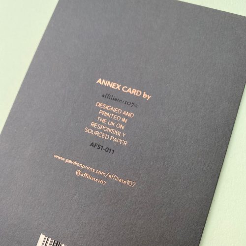 Digitally printed on Colorplan 350gsm board with foiled details.