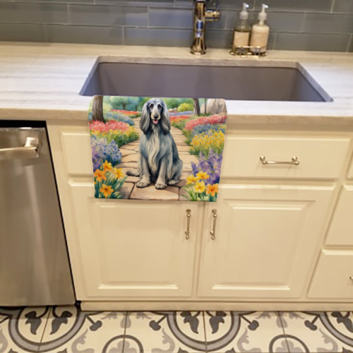 Kitchen Towel featuring breed specific Afghan Hound artwork. Experience the perfect blend of aesthetic appeal and functional excellence with our Plush Velour Kitchen Towels. These are not your ordinary decorative kitchen towels that gather dust. Instead, they are designed to be as practical as they are stylish. The front layer of our towel is constructed from a minky plush polyester, known for its durability and color retention. Unlike conventional kitchen towels, the artwork on our towels is dyed directly into the fabric, ensuring vibrant colors that last. Polish your glassware to a brilliant sparkle using the plush front side of the towel. Flip to the back, crafted from 100% cotton terry loop, to exploit its exceptional absorbency for drying dishes or wiping down counters. Our kitchen towels redefine the concept of functional art, offering lasting quality that maintains the towel’s shape over time. Measuring 15 inches by 25 inches and weighing 2.3 lbs per dozen, these towels deliver an overwhelming sensory experience with their soft, plush, and smooth texture. The edges are meticulously finished with binding, enhancing their durability and visual appeal. For your convenience, these towels are machine washable and can be dried on low heat. After the first wash, the top fabric becomes even softer and fluffier, eliminating the need for ironing. Treat your kitchen to the luxury and functionality it deserves with our plush velour kitchen towels.