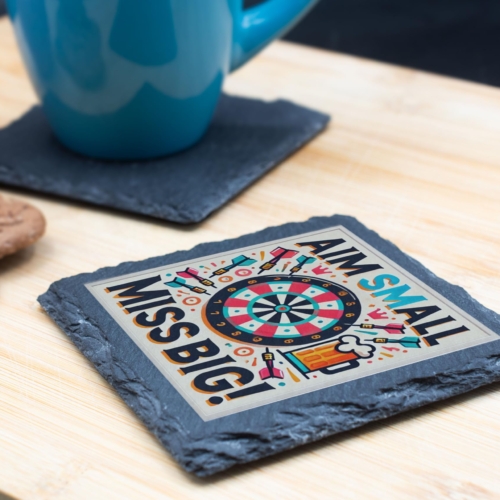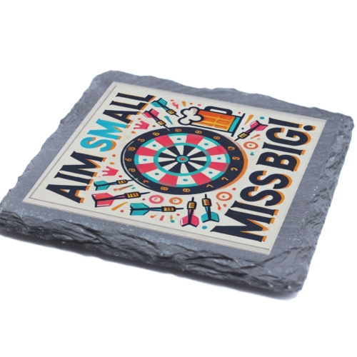 Transform your game room or bar area with the “Aim Small, Miss Big!” slate coaster, a perfect blend of functionality and flair. Designed with a playful dartboard theme, this coaster is bursting with vibrant colors and modern charm. Made from durable natural slate, it offers a rugged yet elegant edge, perfect for protecting your surfaces from spills and scratches. Whether you?re enjoying a casual game night or looking for a unique gift for a dart enthusiast, this coaster is a standout choice. Functional, stylish, and fun?it?s a must-have accessory for dart lovers and pub fans alike! Eye-Catching Dartboard Art: Features a lively and colorful dartboard with vibrant darts and playful details, perfect for dart game enthusiasts. Premium Slate Material: Crafted from durable, natural slate with a rustic finish, ensuring a stylish and sturdy design. Great for Game Rooms & Bars: Adds a touch of fun and personality to any home bar, dart setup, or entertainment space. Functional & Decorative: Protects surfaces from scratches and spills while being a fun conversation starter. Perfect Gift for Dart Fans: Ideal for birthdays, Father’s Day, or as a thoughtful present for anyone who loves darts and drinks.