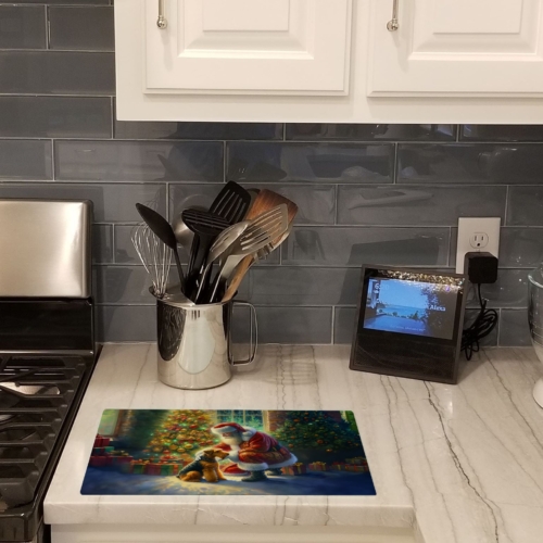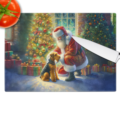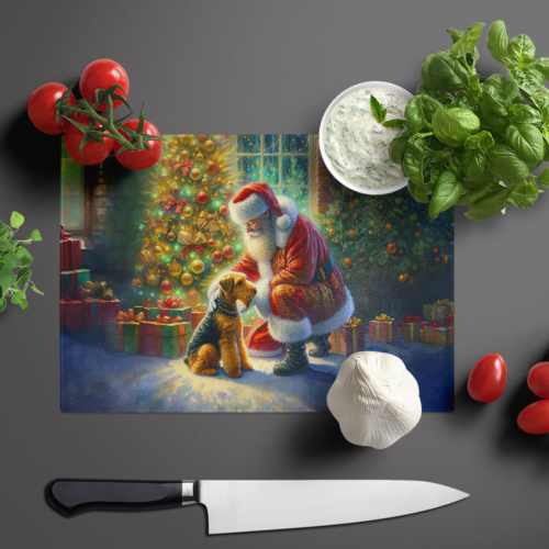 Glass Cutting Board featuring breed specific Airedale Terrier artwork. Celebrate Christmas with this Christmas Cutting Board. Introduce your kitchen to the vibrant, large Decorative Glass Cutting Board from Caroline’s Treasures. Crafted from resilient tempered glass, this board is not only a utilitarian necessity but also a colorful art piece. With its generous dimensions of 15 inches in height and 12 inches in length, it offers ample space for all your cutting needs. Every piece showcases captivating artwork from distinguished artists, bringing an aesthetic edge to your kitchen. Beyond its attractive design, this cutting board ensures your countertop stays pristine and unscathed, owing to its heat-resistant properties. Engineered with user convenience in mind, it features non-skid feet for stability, and rounded corners for additional safety. Its robust construction renders it virtually unbreakable, guaranteeing longevity. The board comes with protective feet bumpers, maintaining its position during use. This product is recommended to be hand washed only. Proudly printed and assembled in the United States, this cutting board exemplifies superior craftsmanship. With Caroline’s Treasures’ Decorative Glass Cutting Board, you’re investing in a blend of functionality and artistic flair.