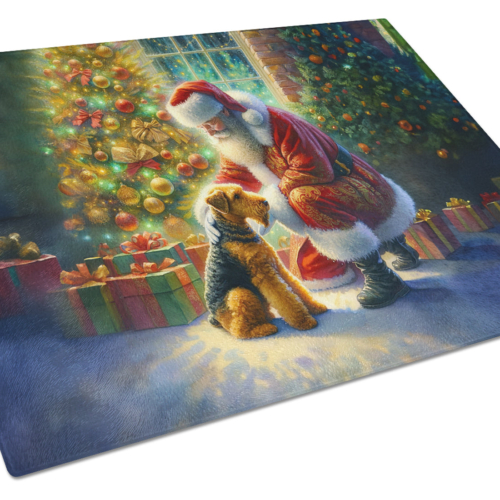 Glass Cutting Board featuring breed specific Airedale Terrier artwork. Celebrate Christmas with this Christmas Cutting Board. Introduce your kitchen to the vibrant, large Decorative Glass Cutting Board from Caroline’s Treasures. Crafted from resilient tempered glass, this board is not only a utilitarian necessity but also a colorful art piece. With its generous dimensions of 15 inches in height and 12 inches in length, it offers ample space for all your cutting needs. Every piece showcases captivating artwork from distinguished artists, bringing an aesthetic edge to your kitchen. Beyond its attractive design, this cutting board ensures your countertop stays pristine and unscathed, owing to its heat-resistant properties. Engineered with user convenience in mind, it features non-skid feet for stability, and rounded corners for additional safety. Its robust construction renders it virtually unbreakable, guaranteeing longevity. The board comes with protective feet bumpers, maintaining its position during use. This product is recommended to be hand washed only. Proudly printed and assembled in the United States, this cutting board exemplifies superior craftsmanship. With Caroline’s Treasures’ Decorative Glass Cutting Board, you’re investing in a blend of functionality and artistic flair.