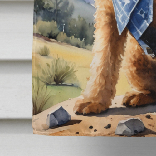 House Flag featuring breed specific Airedale Terrier artwork. Presenting our Heavy Duty Polyester House Size Decorative Sleeve Pole Flag, a vibrant addition to enhance the aesthetic appeal of your home. This large decorative flag, measuring approximately 28 x 40 inches, offers ample coverage and visibility. Each flag is meticulously sewn and made individually, ensuring a unique piece that may slightly vary in size. It’s a sleeve pole flag, designed to fit a standard decorative flag pole effortlessly. Please note that the flag pole and bracket are not included and should be purchased separately. What sets our flag apart is its dual-sided print. The design is mirrored on both sides of the fabric, allowing for uniform visibility regardless of the angle. Printed in full color, our flag showcases vibrant hues that truly stand out. To ensure lasting vibrancy and durability, the dyes are heat-set into the fabric. This ensures your flag remains bright and captivating through various weather conditions. Elevate the look of your home with our Heavy Duty Polyester House Size Decorative Sleeve Pole Flag!
