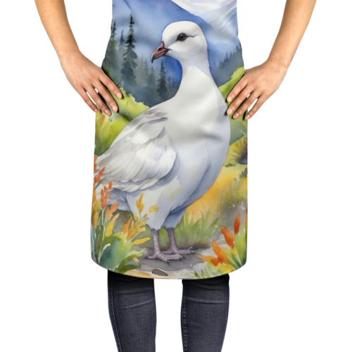 Apron featuring breed specific Willow Ptarmigan artwork. Elevate your cooking, baking, and grilling experiences with our versatile Kitchen or BBQ Apron. This Bib Style apron isn’t just limited to culinary activities – it also serves as an excellent baking apron, artist apron, server apron, gardening apron, or even a dog grooming apron. The apron showcases vibrant full-color artwork contributed by one of our talented artists, bringing a dash of style to your daily tasks. With dimensions of approximately 27″W x 30″H, it provides ample coverage to protect your clothing from spills and splashes. Our apron is meticulously crafted from 100% Ultra Spun Polyester, known for its durability and lightweight nature. The apron comes with white tie straps, ensuring a comfortable and adjustable fit for all. It’s a perfect choice for kitchen apron enthusiasts, whether you are a woman or a man. Designed for easy maintenance, this apron is fully machine washable. The quick-drying polyester material actively reduces staining, keeping your apron looking fresh and new for longer. Our beautifully designed apron isn’t just a functional kitchen accessory – it’s a fashion statement in the culinary world!