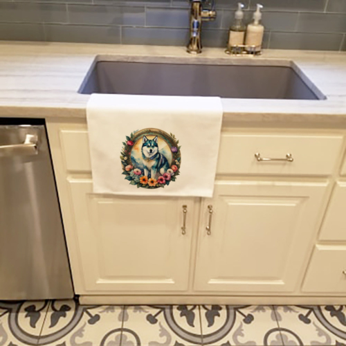 Kitchen Towel Set of 2 featuring breed specific Alaskan Klee Kai artwork. Spruce up your kitchen decor with Caroline’s Treasures Decorative White Kitchen Towel Set. This set of two dish towels showcases beautiful artwork from one of our talented artists, making them both practical and visually appealing. These towels are crafted from 100% cotton, offering excellent absorbency and durability, making them ideal for any kitchen task. Each white towel measures 19 inches by 28 inches, providing ample coverage for drying dishes or wiping up spills. The standout feature of these towels is the full-color artwork design printed on each one. They can serve as a vibrant accent in your kitchen, turning a functional item into a delightful piece of decor. When it comes to care, these towels are machine washable in cold water and can be dried on low heat. Remember to always use a pressing cloth when pressing the design, and avoid using bleach on the decorated towel. The Decorative White Kitchen Towel Set makes a great gift or a stylish addition to your own kitchen.