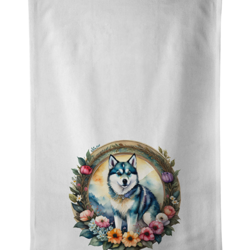 Kitchen Towel Set of 2 featuring breed specific Alaskan Klee Kai artwork. Spruce up your kitchen decor with Caroline’s Treasures Decorative White Kitchen Towel Set. This set of two dish towels showcases beautiful artwork from one of our talented artists, making them both practical and visually appealing. These towels are crafted from 100% cotton, offering excellent absorbency and durability, making them ideal for any kitchen task. Each white towel measures 19 inches by 28 inches, providing ample coverage for drying dishes or wiping up spills. The standout feature of these towels is the full-color artwork design printed on each one. They can serve as a vibrant accent in your kitchen, turning a functional item into a delightful piece of decor. When it comes to care, these towels are machine washable in cold water and can be dried on low heat. Remember to always use a pressing cloth when pressing the design, and avoid using bleach on the decorated towel. The Decorative White Kitchen Towel Set makes a great gift or a stylish addition to your own kitchen.