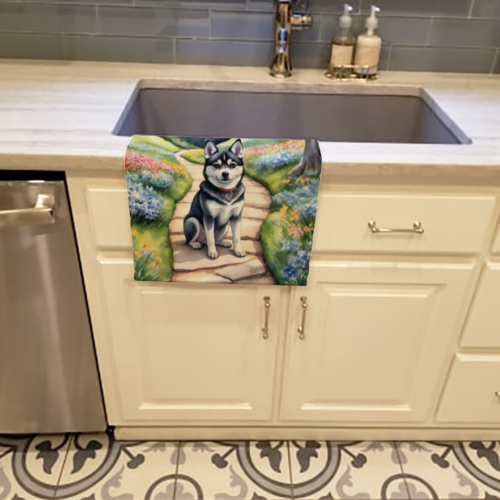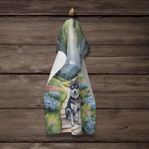 Kitchen Towel featuring breed specific Alaskan Klee Kai artwork. Experience the perfect blend of aesthetic appeal and functional excellence with our Plush Velour Kitchen Towels. These are not your ordinary decorative kitchen towels that gather dust. Instead, they are designed to be as practical as they are stylish. The front layer of our towel is constructed from a minky plush polyester, known for its durability and color retention. Unlike conventional kitchen towels, the artwork on our towels is dyed directly into the fabric, ensuring vibrant colors that last. Polish your glassware to a brilliant sparkle using the plush front side of the towel. Flip to the back, crafted from 100% cotton terry loop, to exploit its exceptional absorbency for drying dishes or wiping down counters. Our kitchen towels redefine the concept of functional art, offering lasting quality that maintains the towel’s shape over time. Measuring 15 inches by 25 inches and weighing 2.3 lbs per dozen, these towels deliver an overwhelming sensory experience with their soft, plush, and smooth texture. The edges are meticulously finished with binding, enhancing their durability and visual appeal. For your convenience, these towels are machine washable and can be dried on low heat. After the first wash, the top fabric becomes even softer and fluffier, eliminating the need for ironing. Treat your kitchen to the luxury and functionality it deserves with our plush velour kitchen towels.