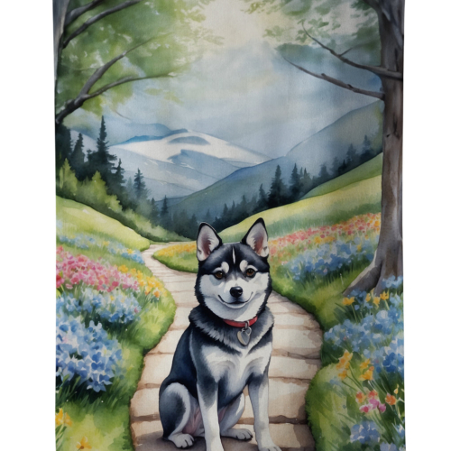Kitchen Towel featuring breed specific Alaskan Klee Kai artwork. Experience the perfect blend of aesthetic appeal and functional excellence with our Plush Velour Kitchen Towels. These are not your ordinary decorative kitchen towels that gather dust. Instead, they are designed to be as practical as they are stylish. The front layer of our towel is constructed from a minky plush polyester, known for its durability and color retention. Unlike conventional kitchen towels, the artwork on our towels is dyed directly into the fabric, ensuring vibrant colors that last. Polish your glassware to a brilliant sparkle using the plush front side of the towel. Flip to the back, crafted from 100% cotton terry loop, to exploit its exceptional absorbency for drying dishes or wiping down counters. Our kitchen towels redefine the concept of functional art, offering lasting quality that maintains the towel’s shape over time. Measuring 15 inches by 25 inches and weighing 2.3 lbs per dozen, these towels deliver an overwhelming sensory experience with their soft, plush, and smooth texture. The edges are meticulously finished with binding, enhancing their durability and visual appeal. For your convenience, these towels are machine washable and can be dried on low heat. After the first wash, the top fabric becomes even softer and fluffier, eliminating the need for ironing. Treat your kitchen to the luxury and functionality it deserves with our plush velour kitchen towels.