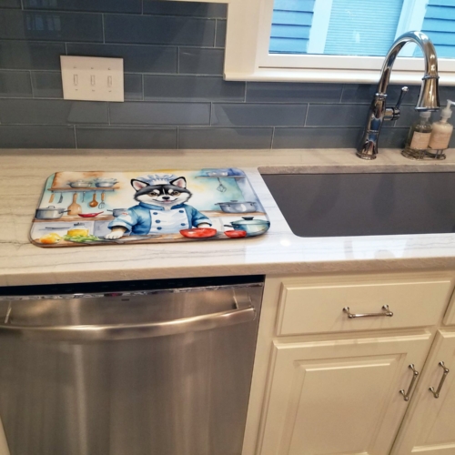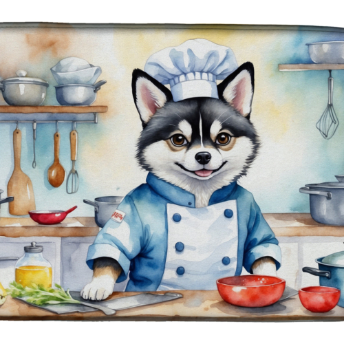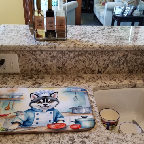Dish Drying Mat featuring breed specific Alaskan Klee Kai artwork. Say goodbye to messy countertops and soggy dish towels with our innovative dish drying mat. Our high-quality dish drying pad is designed to keep your countertops dry while offering a stylish and efficient solution. Whether you’re air drying dishes, glasses, stemware, silverware, pots, pans, bottles, or even fruits and vegetables, our dish mat is the perfect choice. The 14 inches x 22 inches size fits most counters and dish drying racks, and the non-slip design ensures stability. Made with water-absorbent polyester and a polyurethane foam insert, our dish drying mat is not only functional but also durable. It’s machine washable and printed in the USA for long-lasting use. The beautiful artwork adds flair to your kitchen decor, making it a perfect housewarming gift or present for any occasion. Upgrade your kitchen experience with our absorbent and versatile dish drying mat.