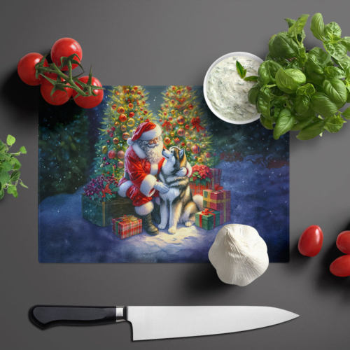 Glass Cutting Board featuring breed specific Alaskan Malamute artwork. Celebrate Christmas with this Christmas Cutting Board. Introduce your kitchen to the vibrant, large Decorative Glass Cutting Board from Caroline’s Treasures. Crafted from resilient tempered glass, this board is not only a utilitarian necessity but also a colorful art piece. With its generous dimensions of 15 inches in height and 12 inches in length, it offers ample space for all your cutting needs. Every piece showcases captivating artwork from distinguished artists, bringing an aesthetic edge to your kitchen. Beyond its attractive design, this cutting board ensures your countertop stays pristine and unscathed, owing to its heat-resistant properties. Engineered with user convenience in mind, it features non-skid feet for stability, and rounded corners for additional safety. Its robust construction renders it virtually unbreakable, guaranteeing longevity. The board comes with protective feet bumpers, maintaining its position during use. This product is recommended to be hand washed only. Proudly printed and assembled in the United States, this cutting board exemplifies superior craftsmanship. With Caroline’s Treasures’ Decorative Glass Cutting Board, you’re investing in a blend of functionality and artistic flair.