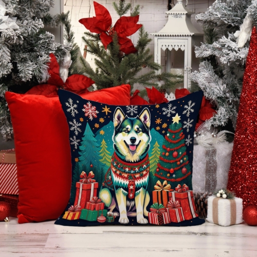Throw Pillow featuring breed specific Alaskan Malamute artwork. Celebrate Christmas with this Christmas Pillow. Revitalize your outdoor or indoor living space with Caroline’s Treasures 18×18 Fabric Decorative Pillow. With a generously sized dimension of approximately 18 inches by 18 inches, this pillow makes a comfortable and aesthetic addition to any seating area. Made from a unique, water-resistant material developed by Caroline’s Treasures, the pillow sham is 100% polyester fabric that’s durable and ready to weather any condition. Its vibrant, full-color artwork will not fade over time as it is dyed with color-fast dyes. Whether you place it on your patio furniture, porch, veranda, or indoor couch, its soft canvas fabric ensures a cozy experience. The pillow is handcrafted in the United States, featuring a sham created from three pieces of fabric and a polyester insert for enduring shape and overstuffed comfort. Despite being robustly built to endure the outdoors, it is as soft and snug as your favorite indoor cushions. Please note, as all our pillows are handmade, sizes may vary slightly, adding to the charm of this unique decorative item.