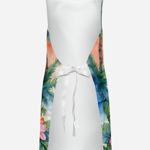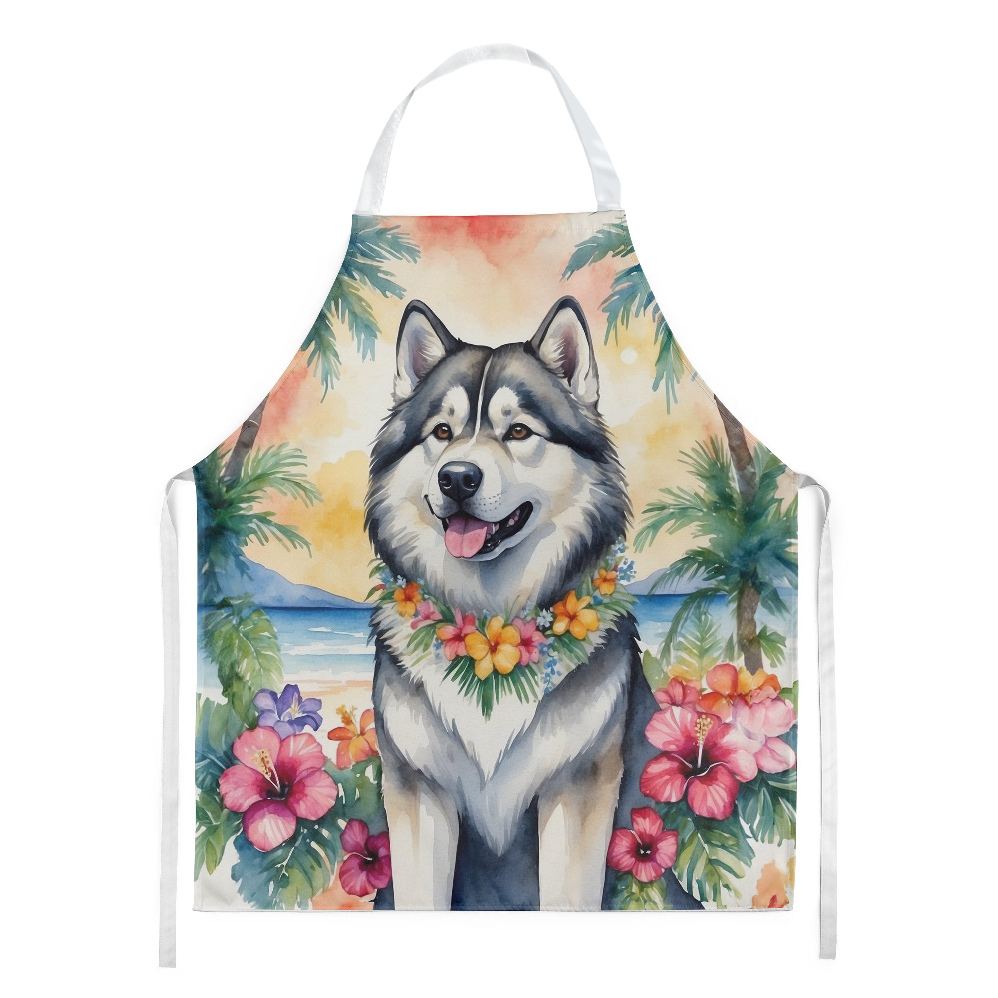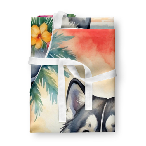 Apron featuring breed specific Alaskan Malamute artwork. Elevate your cooking, baking, and grilling experiences with our versatile Kitchen or BBQ Apron. This Bib Style apron isn’t just limited to culinary activities – it also serves as an excellent baking apron, artist apron, server apron, gardening apron, or even a dog grooming apron. The apron showcases vibrant full-color artwork contributed by one of our talented artists, bringing a dash of style to your daily tasks. With dimensions of approximately 27″W x 30″H, it provides ample coverage to protect your clothing from spills and splashes. Our apron is meticulously crafted from 100% Ultra Spun Polyester, known for its durability and lightweight nature. The apron comes with white tie straps, ensuring a comfortable and adjustable fit for all. It’s a perfect choice for kitchen apron enthusiasts, whether you are a woman or a man. Designed for easy maintenance, this apron is fully machine washable. The quick-drying polyester material actively reduces staining, keeping your apron looking fresh and new for longer. Our beautifully designed apron isn’t just a functional kitchen accessory – it’s a fashion statement in the culinary world!