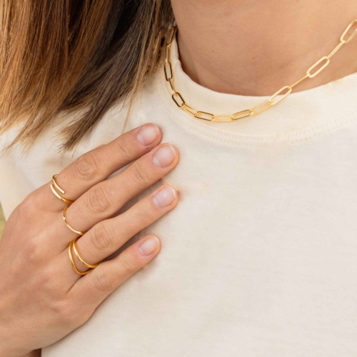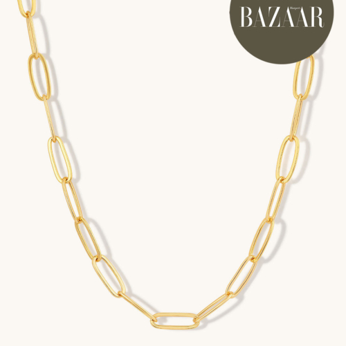 The new contemporary classic for your everyday. Large oval links make this chain a modern staple to complete your necklace stack, or wear alone for a simplistic yet detailed look. MATERIALS : 18k gold plated silver SIZING : 17″ + extender