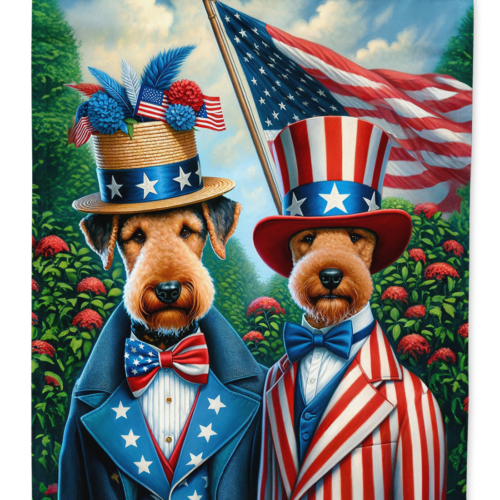 House Flag featuring breed specific Airedale Terrier artwork. Presenting our Heavy Duty Polyester House Size Decorative Sleeve Pole Flag, a vibrant addition to enhance the aesthetic appeal of your home. This large decorative flag, measuring approximately 28 x 40 inches, offers ample coverage and visibility. Each flag is meticulously sewn and made individually, ensuring a unique piece that may slightly vary in size. It’s a sleeve pole flag, designed to fit a standard decorative flag pole effortlessly. Please note that the flag pole and bracket are not included and should be purchased separately. What sets our flag apart is its dual-sided print. The design is mirrored on both sides of the fabric, allowing for uniform visibility regardless of the angle. Printed in full color, our flag showcases vibrant hues that truly stand out. To ensure lasting vibrancy and durability, the dyes are heat-set into the fabric. This ensures your flag remains bright and captivating through various weather conditions. Elevate the look of your home with our Heavy Duty Polyester House Size Decorative Sleeve Pole Flag!
