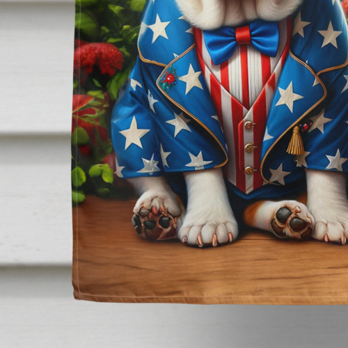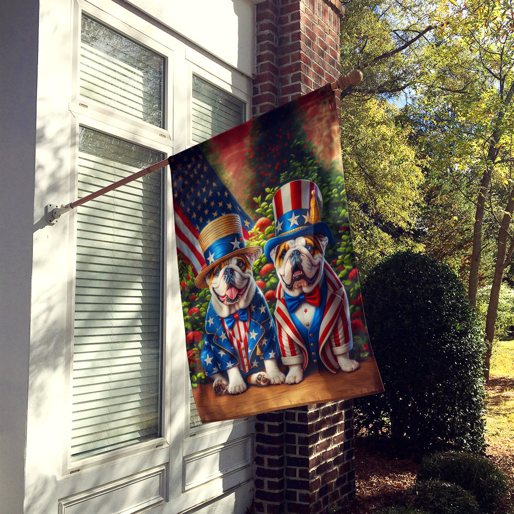 House Flag featuring breed specific English Bulldog artwork. Presenting our Heavy Duty Polyester House Size Decorative Sleeve Pole Flag, a vibrant addition to enhance the aesthetic appeal of your home. This large decorative flag, measuring approximately 28 x 40 inches, offers ample coverage and visibility. Each flag is meticulously sewn and made individually, ensuring a unique piece that may slightly vary in size. It’s a sleeve pole flag, designed to fit a standard decorative flag pole effortlessly. Please note that the flag pole and bracket are not included and should be purchased separately. What sets our flag apart is its dual-sided print. The design is mirrored on both sides of the fabric, allowing for uniform visibility regardless of the angle. Printed in full color, our flag showcases vibrant hues that truly stand out. To ensure lasting vibrancy and durability, the dyes are heat-set into the fabric. This ensures your flag remains bright and captivating through various weather conditions. Elevate the look of your home with our Heavy Duty Polyester House Size Decorative Sleeve Pole Flag!