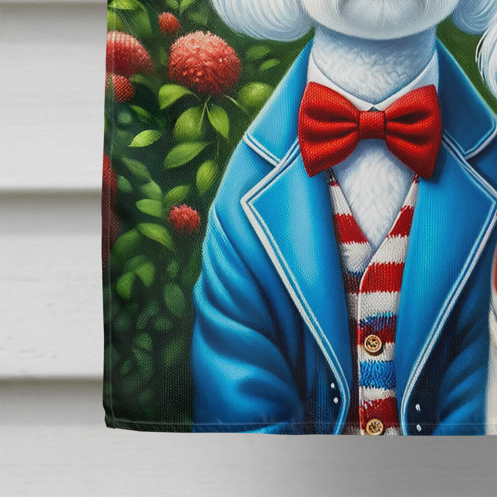 House Flag featuring breed specific Maltese artwork. Presenting our Heavy Duty Polyester House Size Decorative Sleeve Pole Flag, a vibrant addition to enhance the aesthetic appeal of your home. This large decorative flag, measuring approximately 28 x 40 inches, offers ample coverage and visibility. Each flag is meticulously sewn and made individually, ensuring a unique piece that may slightly vary in size. It’s a sleeve pole flag, designed to fit a standard decorative flag pole effortlessly. Please note that the flag pole and bracket are not included and should be purchased separately. What sets our flag apart is its dual-sided print. The design is mirrored on both sides of the fabric, allowing for uniform visibility regardless of the angle. Printed in full color, our flag showcases vibrant hues that truly stand out. To ensure lasting vibrancy and durability, the dyes are heat-set into the fabric. This ensures your flag remains bright and captivating through various weather conditions. Elevate the look of your home with our Heavy Duty Polyester House Size Decorative Sleeve Pole Flag!