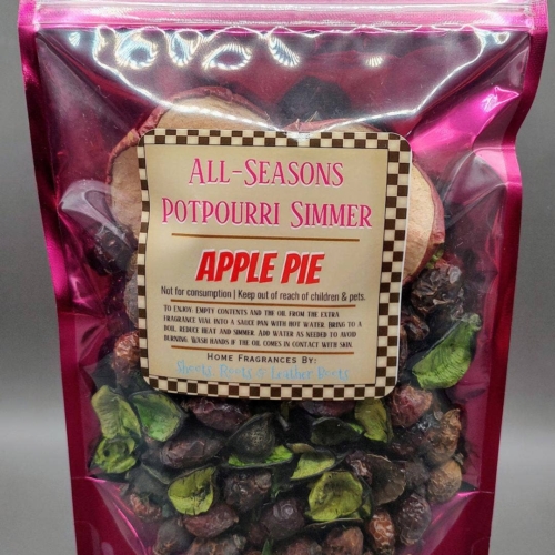 Our most popular scents are now available in a simmer! Our Apple Pie Simmer comes in a 5x3x9 fuchsia stand-up zipper pouch. Although the simmers come highly scented, I have included an extra 1 ml fragrance oil vial for even more scent! Apple Pie is AMAZING! Try it, you’ll agree. To enjoy- Pour the contents + the extra oil into a saucepan or crockpot with at least 2 cups water. Simmer on low and allow the vapors to freshen your home. Do not boil dry. Do not consume.