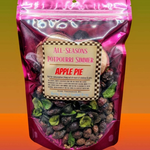 Our most popular scents are now available in a simmer! Our Apple Pie Simmer comes in a 5x3x9 fuchsia stand-up zipper pouch. Although the simmers come highly scented, I have included an extra 1 ml fragrance oil vial for even more scent! Apple Pie is AMAZING! Try it, you’ll agree. To enjoy- Pour the contents + the extra oil into a saucepan or crockpot with at least 2 cups water. Simmer on low and allow the vapors to freshen your home. Do not boil dry. Do not consume.