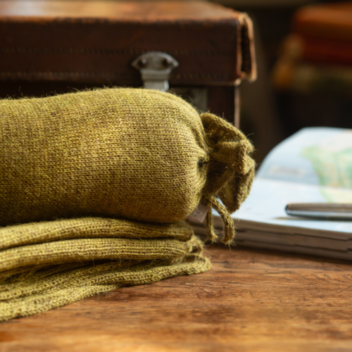 Deliciously light blend of Alpaca (70%) and Bamboo fibre (30%), this luxurious wrap is ideal for any season, silky soft, whisper light and hypoallergenic. Versatile for all occasions. Weightlessly warm, our travel wrap is usable Winter or Summer, and the bolster bag protects it when you’re not wearing it.