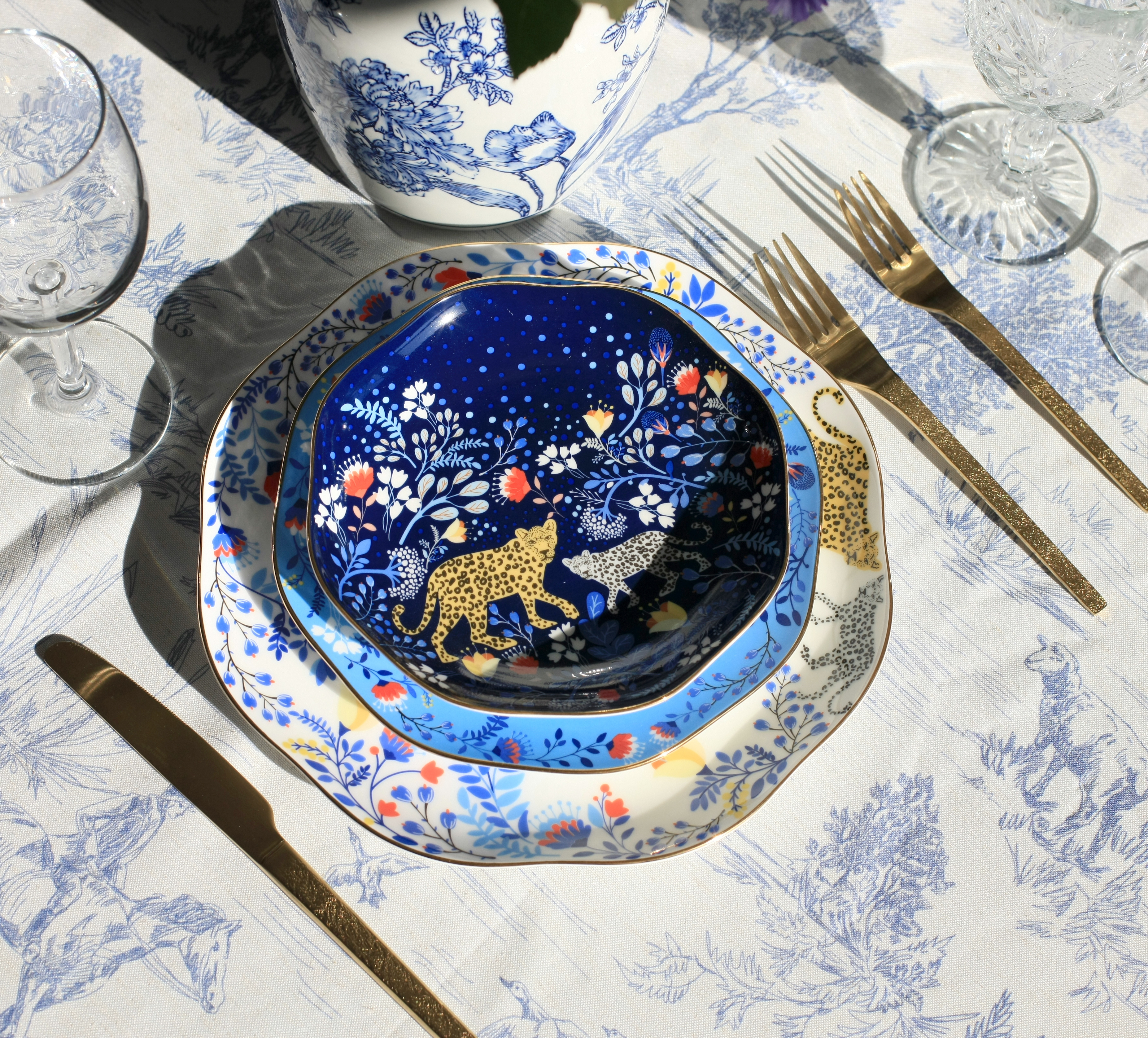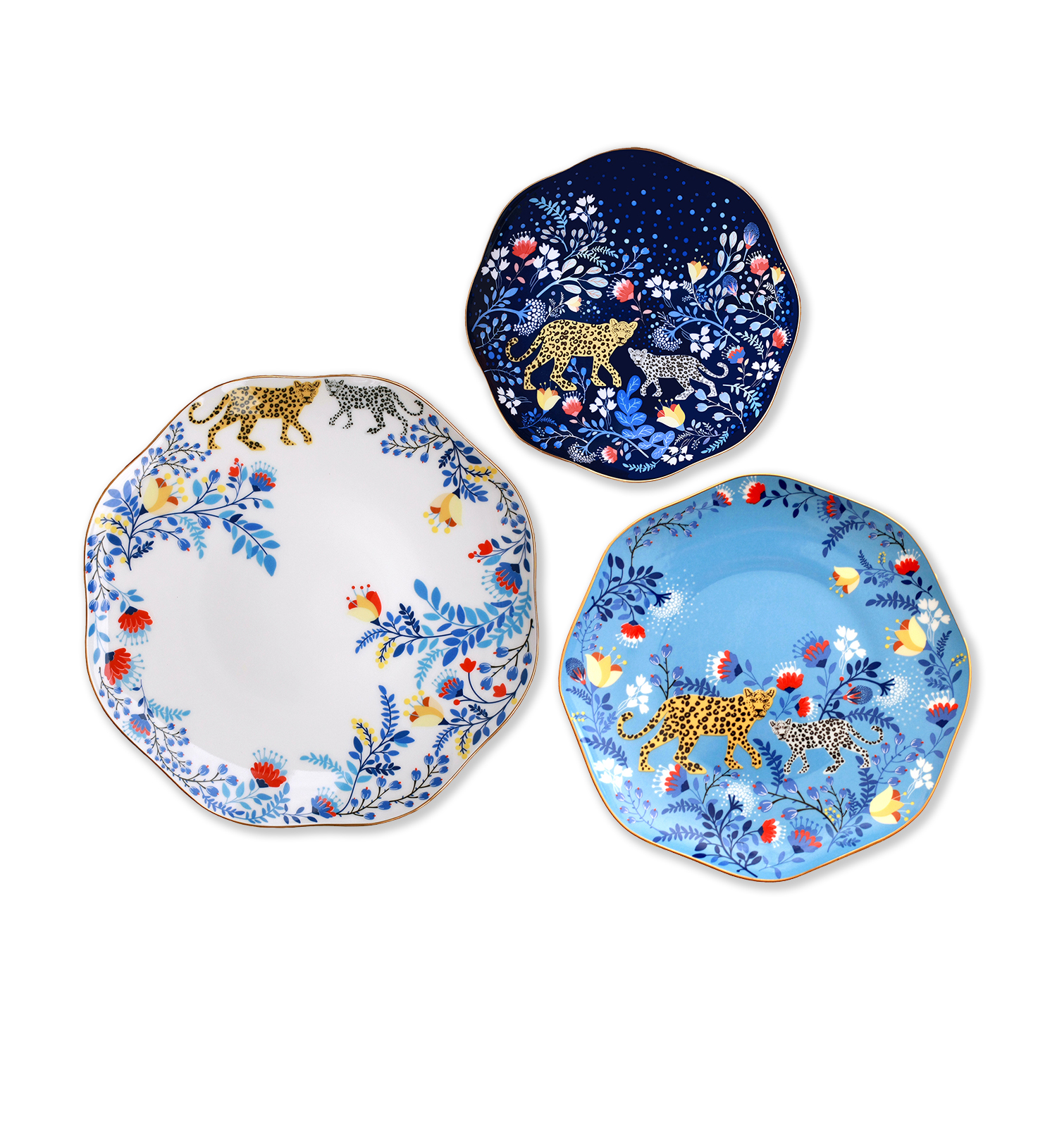 Amazon Rainforest Bone China Plates In Blue, Set Of Three