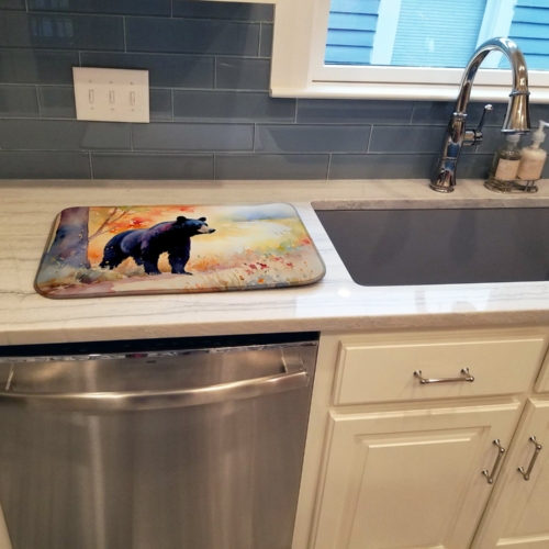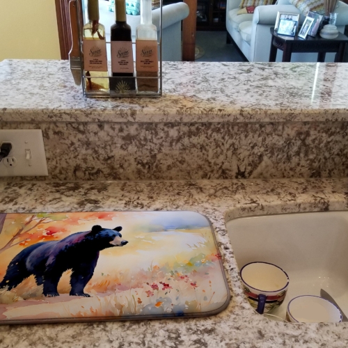Dish Drying Mat featuring breed specific American Black Bear artwork. Say goodbye to messy countertops and soggy dish towels with our innovative dish drying mat. Our high-quality dish drying pad is designed to keep your countertops dry while offering a stylish and efficient solution. Whether you’re air drying dishes, glasses, stemware, silverware, pots, pans, bottles, or even fruits and vegetables, our dish mat is the perfect choice. The 14 inches x 22 inches size fits most counters and dish drying racks, and the non-slip design ensures stability. Made with water-absorbent polyester and a polyurethane foam insert, our dish drying mat is not only functional but also durable. It’s machine washable and printed in the USA for long-lasting use. The beautiful artwork adds flair to your kitchen decor, making it a perfect housewarming gift or present for any occasion. Upgrade your kitchen experience with our absorbent and versatile dish drying mat.