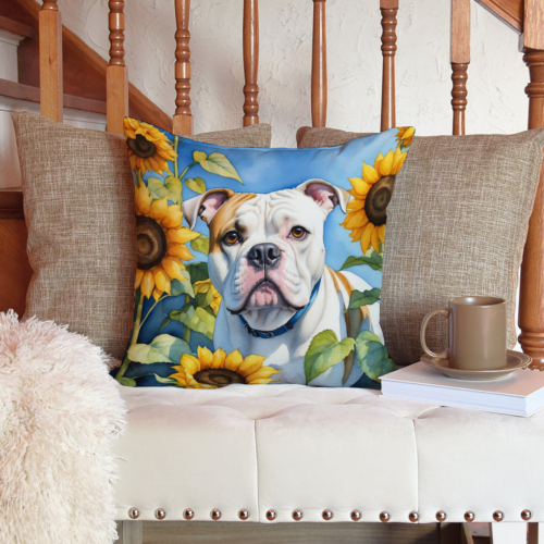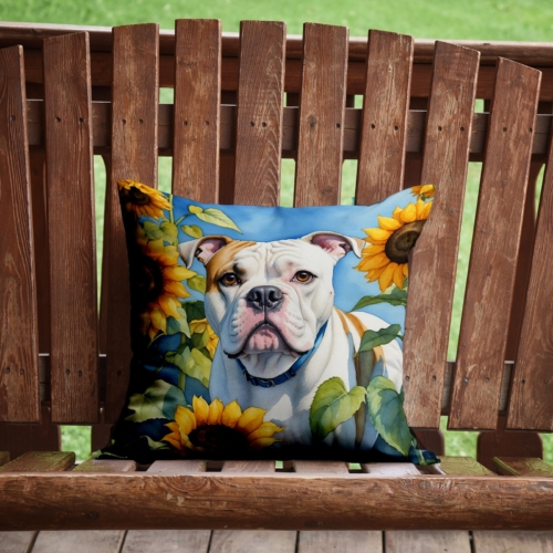 Throw Pillow featuring breed specific American Bulldog artwork. Add a touch of vibrancy and comfort to your outdoor seating with Caroline’s Treasures Fabric Decorative Pillow. Measuring approximately 14 inches by 14 inches, this outdoor pillow is crafted to elevate the appeal of your patio furniture, infusing it with vivid color and artistic flair. The pillow includes a 100% Polyester Fabric sham filled with a quality pillow form to provide superior comfort. Innovatively made from our brand new material, specifically woven for its water resistance, this pillow is designed for durability. The soft canvas fabric offers versatility in use, fit for your indoor couch or your outdoor patio, porch, or veranda. The fabric is dyed with colorfast dyes built for resilience against weather conditions, ensuring the pillow retains its beauty over time. Constructed by sewing three fabric pieces to create a sham, the polyester insert is then nestled inside to form the pillow, resulting in an overstuffed pillow that maintains its shape. Both the sham and the pillow insert are proudly made in the United States. As the pillows are handcrafted, there may be minor variations in size, further enhancing their unique charm. Experience comfort in style with Caroline’s Treasures Fabric Decorative Pillow.