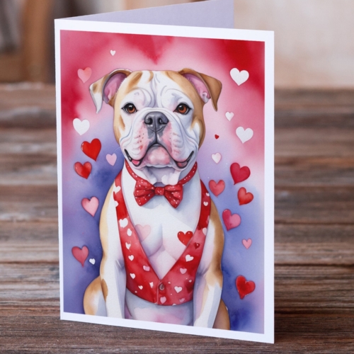 Greeting Cards Pack of 8 featuring breed specific American Bulldog artwork. Celebrate Valentine’s Day with this Valentine’s Day . Celebrate special moments with Caroline’s Treasures Printed Greeting Card Pack. This pack includes eight beautifully folded 5×7 cards, accompanied by eight matching white envelopes. With blank interiors, these cards provide ample space for your personalized messages and heartfelt holiday greetings. Each card features captivating full-color artwork, meticulously printed in our facility on high-quality 80 lb cover stock or 216 GSM. The super smooth finish of the white cards enhances the visual impact of the artwork, creating a truly stunning presentation. Designed by our talented in-house artists or licensed artists, the artwork on these cards showcases their creativity and attention to detail. From vibrant illustrations to captivating designs, each card tells its own unique story. Whether it’s for birthdays, anniversaries, holidays, or any special occasion, Caroline’s Treasures Greeting Card Pack is the perfect way to convey your heartfelt sentiments. Share joy, love, and warm wishes with these exquisite cards and make every moment unforgettable.