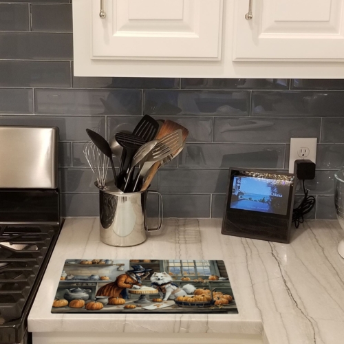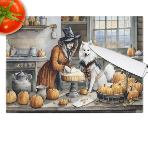 Glass Cutting Board featuring breed specific American Eskimo artwork. Celebrate Halloween with this Halloween Cutting Board. Introduce your kitchen to the vibrant, large Decorative Glass Cutting Board from Caroline’s Treasures. Crafted from resilient tempered glass, this board is not only a utilitarian necessity but also a colorful art piece. With its generous dimensions of 15 inches in height and 12 inches in length, it offers ample space for all your cutting needs. Every piece showcases captivating artwork from distinguished artists, bringing an aesthetic edge to your kitchen. Beyond its attractive design, this cutting board ensures your countertop stays pristine and unscathed, owing to its heat-resistant properties. Engineered with user convenience in mind, it features non-skid feet for stability, and rounded corners for additional safety. Its robust construction renders it virtually unbreakable, guaranteeing longevity. The board comes with protective feet bumpers, maintaining its position during use. This product is recommended to be hand washed only. Proudly printed and assembled in the United States, this cutting board exemplifies superior craftsmanship. With Caroline’s Treasures’ Decorative Glass Cutting Board, you’re investing in a blend of functionality and artistic flair.