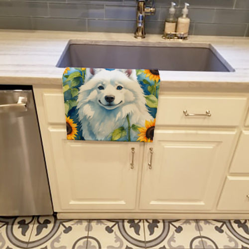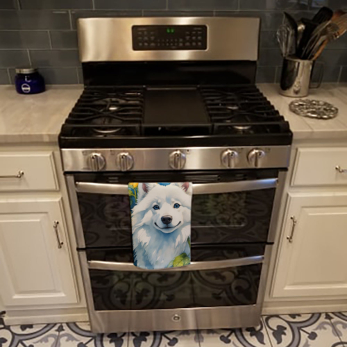 Kitchen Towel featuring breed specific American Eskimo artwork. Experience the perfect blend of aesthetic appeal and functional excellence with our Plush Velour Kitchen Towels. These are not your ordinary decorative kitchen towels that gather dust. Instead, they are designed to be as practical as they are stylish. The front layer of our towel is constructed from a minky plush polyester, known for its durability and color retention. Unlike conventional kitchen towels, the artwork on our towels is dyed directly into the fabric, ensuring vibrant colors that last. Polish your glassware to a brilliant sparkle using the plush front side of the towel. Flip to the back, crafted from 100% cotton terry loop, to exploit its exceptional absorbency for drying dishes or wiping down counters. Our kitchen towels redefine the concept of functional art, offering lasting quality that maintains the towel’s shape over time. Measuring 15 inches by 25 inches and weighing 2.3 lbs per dozen, these towels deliver an overwhelming sensory experience with their soft, plush, and smooth texture. The edges are meticulously finished with binding, enhancing their durability and visual appeal. For your convenience, these towels are machine washable and can be dried on low heat. After the first wash, the top fabric becomes even softer and fluffier, eliminating the need for ironing. Treat your kitchen to the luxury and functionality it deserves with our plush velour kitchen towels.