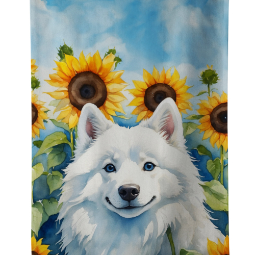 Kitchen Towel featuring breed specific American Eskimo artwork. Experience the perfect blend of aesthetic appeal and functional excellence with our Plush Velour Kitchen Towels. These are not your ordinary decorative kitchen towels that gather dust. Instead, they are designed to be as practical as they are stylish. The front layer of our towel is constructed from a minky plush polyester, known for its durability and color retention. Unlike conventional kitchen towels, the artwork on our towels is dyed directly into the fabric, ensuring vibrant colors that last. Polish your glassware to a brilliant sparkle using the plush front side of the towel. Flip to the back, crafted from 100% cotton terry loop, to exploit its exceptional absorbency for drying dishes or wiping down counters. Our kitchen towels redefine the concept of functional art, offering lasting quality that maintains the towel’s shape over time. Measuring 15 inches by 25 inches and weighing 2.3 lbs per dozen, these towels deliver an overwhelming sensory experience with their soft, plush, and smooth texture. The edges are meticulously finished with binding, enhancing their durability and visual appeal. For your convenience, these towels are machine washable and can be dried on low heat. After the first wash, the top fabric becomes even softer and fluffier, eliminating the need for ironing. Treat your kitchen to the luxury and functionality it deserves with our plush velour kitchen towels.