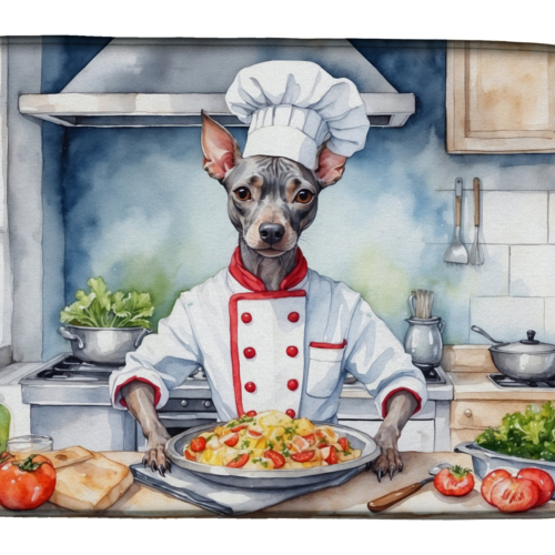 Dish Drying Mat featuring breed specific American Hairless Terrier artwork. Say goodbye to messy countertops and soggy dish towels with our innovative dish drying mat. Our high-quality dish drying pad is designed to keep your countertops dry while offering a stylish and efficient solution. Whether you’re air drying dishes, glasses, stemware, silverware, pots, pans, bottles, or even fruits and vegetables, our dish mat is the perfect choice. The 14 inches x 22 inches size fits most counters and dish drying racks, and the non-slip design ensures stability. Made with water-absorbent polyester and a polyurethane foam insert, our dish drying mat is not only functional but also durable. It’s machine washable and printed in the USA for long-lasting use. The beautiful artwork adds flair to your kitchen decor, making it a perfect housewarming gift or present for any occasion. Upgrade your kitchen experience with our absorbent and versatile dish drying mat.