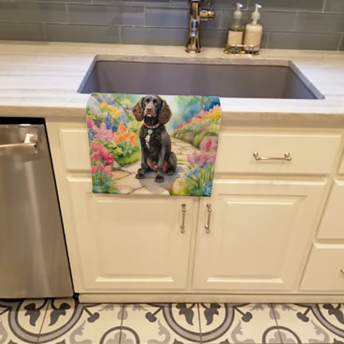 Kitchen Towel featuring breed specific American Water Spaniel artwork. Experience the perfect blend of aesthetic appeal and functional excellence with our Plush Velour Kitchen Towels. These are not your ordinary decorative kitchen towels that gather dust. Instead, they are designed to be as practical as they are stylish. The front layer of our towel is constructed from a minky plush polyester, known for its durability and color retention. Unlike conventional kitchen towels, the artwork on our towels is dyed directly into the fabric, ensuring vibrant colors that last. Polish your glassware to a brilliant sparkle using the plush front side of the towel. Flip to the back, crafted from 100% cotton terry loop, to exploit its exceptional absorbency for drying dishes or wiping down counters. Our kitchen towels redefine the concept of functional art, offering lasting quality that maintains the towel’s shape over time. Measuring 15 inches by 25 inches and weighing 2.3 lbs per dozen, these towels deliver an overwhelming sensory experience with their soft, plush, and smooth texture. The edges are meticulously finished with binding, enhancing their durability and visual appeal. For your convenience, these towels are machine washable and can be dried on low heat. After the first wash, the top fabric becomes even softer and fluffier, eliminating the need for ironing. Treat your kitchen to the luxury and functionality it deserves with our plush velour kitchen towels.