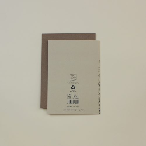 120 mm x 170 mm, printed in the UK on FSC certified recycled board from responsible sources, suitable for letter post. Blank inside and comes with the matching craft envelope.