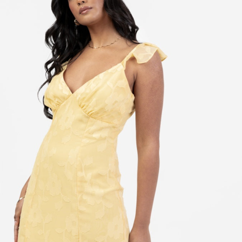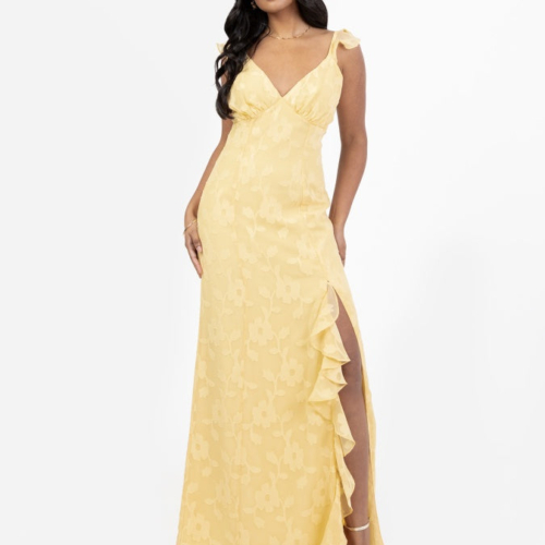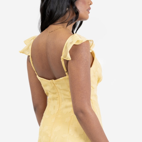 Anaya With Love Yellow Floral Burnout Strappy Maxi Dress with Ruffle Detail