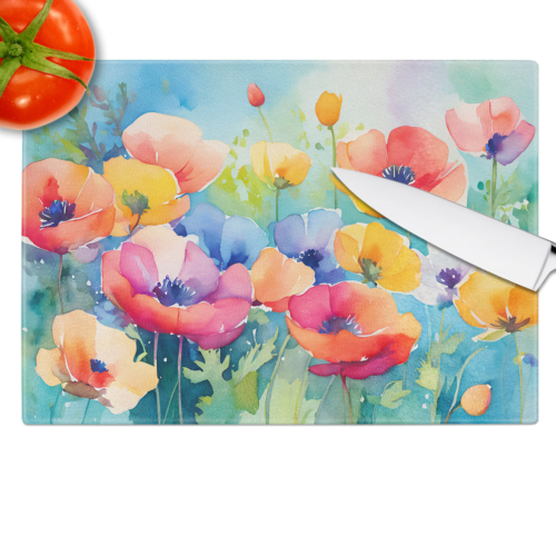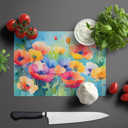 Glass Cutting Board featuring breed specific Anemones artwork. Introduce your kitchen to the vibrant, large Decorative Glass Cutting Board from Caroline’s Treasures. Crafted from resilient tempered glass, this board is not only a utilitarian necessity but also a colorful art piece. With its generous dimensions of 15 inches in height and 12 inches in length, it offers ample space for all your cutting needs. Every piece showcases captivating artwork from distinguished artists, bringing an aesthetic edge to your kitchen. Beyond its attractive design, this cutting board ensures your countertop stays pristine and unscathed, owing to its heat-resistant properties. Engineered with user convenience in mind, it features non-skid feet for stability, and rounded corners for additional safety. Its robust construction renders it virtually unbreakable, guaranteeing longevity. The board comes with protective feet bumpers, maintaining its position during use. This product is recommended to be hand washed only. Proudly printed and assembled in the United States, this cutting board exemplifies superior craftsmanship. With Caroline’s Treasures’ Decorative Glass Cutting Board, you’re investing in a blend of functionality and artistic flair.