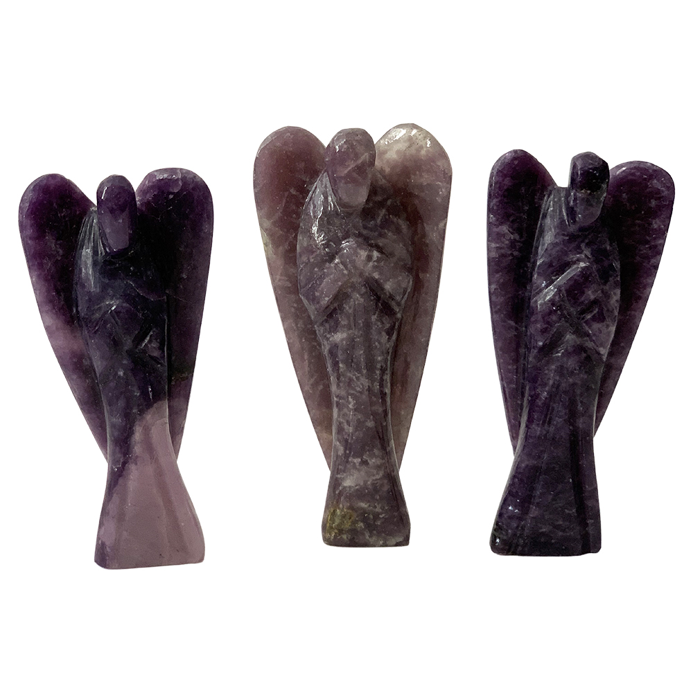 Hand-carved Crystal Angels (3.5cm, 5cm, 7.5cm), crafted from natural gemstones. Each piece varies slightly in shape, colour, and markings. Ideal stock for holistic stores, gift boutiques, and wellness centres.