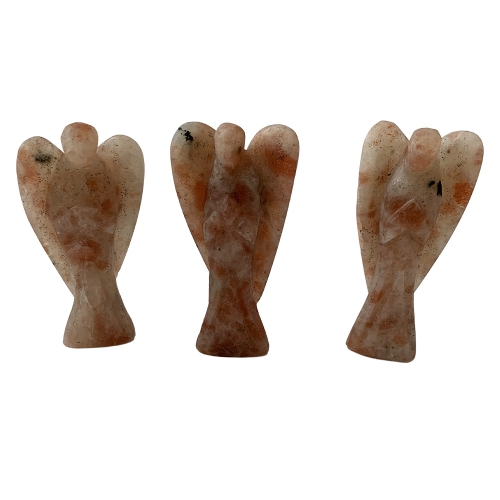 Hand-carved Crystal Angels (3.5cm, 5cm, 7.5cm), crafted from natural gemstones. Each piece varies slightly in shape, colour, and markings. Ideal stock for holistic stores, gift boutiques, and wellness centres.
