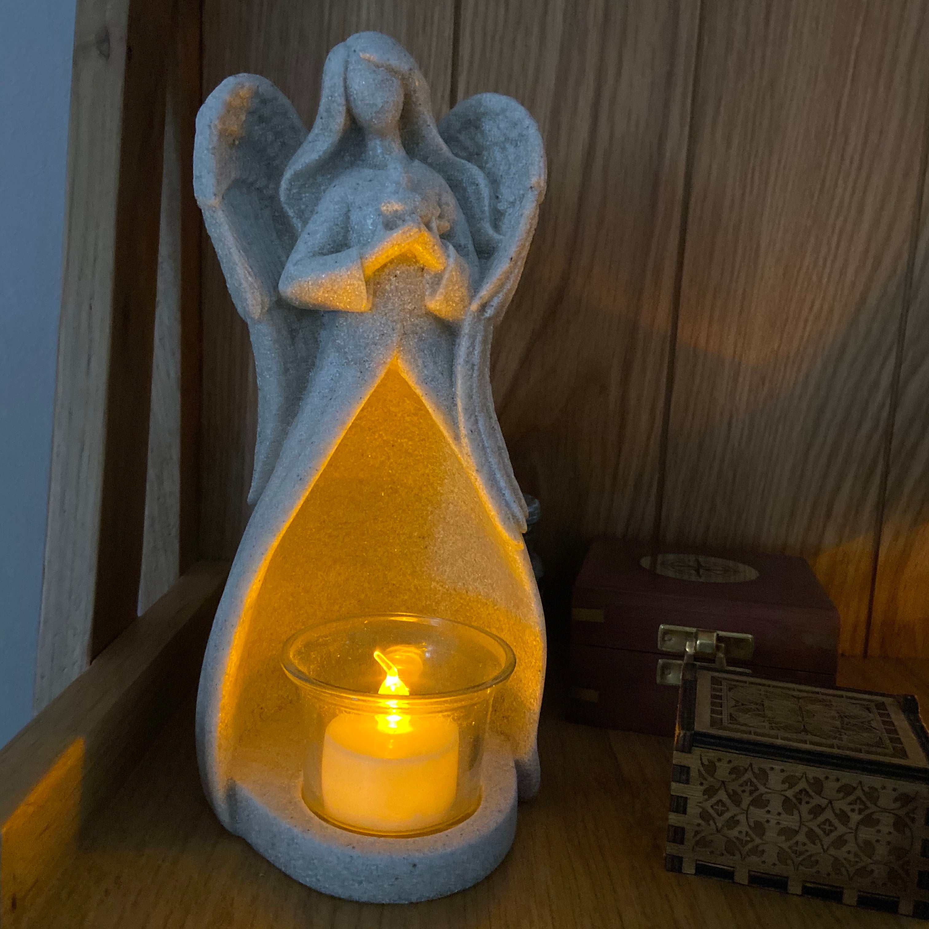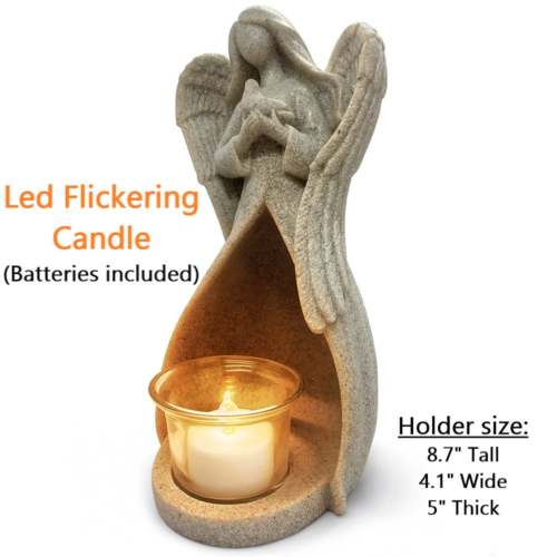 EXPRESS YOUR SYMPATHY: When someone you care about loses someone they love, it’s not about what you say, but rather what you do. Express your sympathy and provide comfort by giving or sending this memorial candle gift. This angels figurines candle holder is Made of high quality polished Resin and come with tealight led candle and condolence card and designed to bring some light into grieving friends or relative’s life. A GIFT WORTH GIVING: We know finding the right grief gifts can be challenging especially when you’ve never done it before, which is why we designed our tealight holders to provide you with cost friendly sympathy gifts for loss of loved one, that’s just right for most situations, Including a condolence card (which you won’t find on most other sympathy gifts). TEALIGHT CANDLE INCLUDED: Our memorial candle holder, is made of high quality polished resin, it comes with a flameless tealight candle (battery included) which glow a warm light and flickers like real candle for repeatable and safe use. The candle holder can be used as any of those: grieving gifts, house warming presents, home decorations for living room, religious gifts for women, inspirational gifts for women, gifts for grandma etc… A LASTING MEMORY: Besides showing your support and sympathy, our angel candle holder acts as a keepsake in loving memory, to help them remember not only the day they moved on, but also all the times they spent together. “OakiWay” Family is proud to be part of your great giving attribute, by providing special comfort gifts.