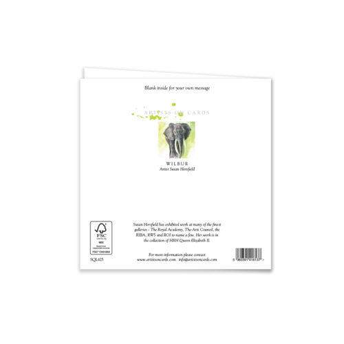 This striking elephant art greeting card, featuring “Wilbur,” captures the strength and grace of one of nature’s most iconic animals. Perfect for wildlife lovers, this card is blank inside, ready for your own heartfelt message.