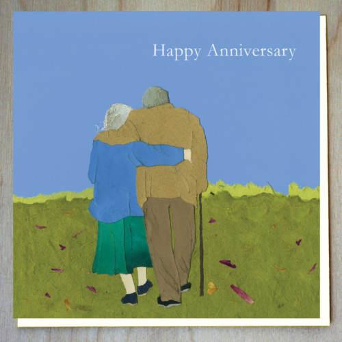 Anniversary card with a gentle, loving illustration of an elderly couple.