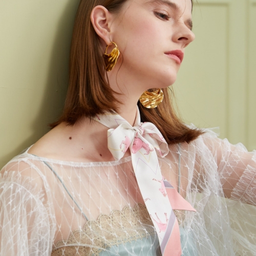 Delicate and graceful, the AntelopeSilk Skinny Scarf captures the beauty of nature in soft, flowing silk. Featuring an ethereal floral-inspired design with gentle blush tones and subtle accents, this scarf embodies elegance and femininity. Its lightweight feel and timeless appeal make it a versatile addition to any wardrobe, perfect for adding a soft, romantic touch to your outfit. Product Description 100% Mulberry Silk 120cm x 5cm (Approx. 47″L x 2″W) Double-sided stitching How to Wear a Silk Skinny Scarf Neck Scarf: Tie it around your neck for a sophisticated, feminine touch. Hair Accessory: Wear as a headband or wrap around a low ponytail for a romantic look. Blouse Accent: Tuck it under a collared shirt or let it drape for effortless elegance. Bag Detail: Wrap it around your handbag for a refined, graceful charm. Belt Alternative: Style over a dress or trousers for a chic, cinched waist. Personal Expression: Mix and match with different outfits to suit your unique style.