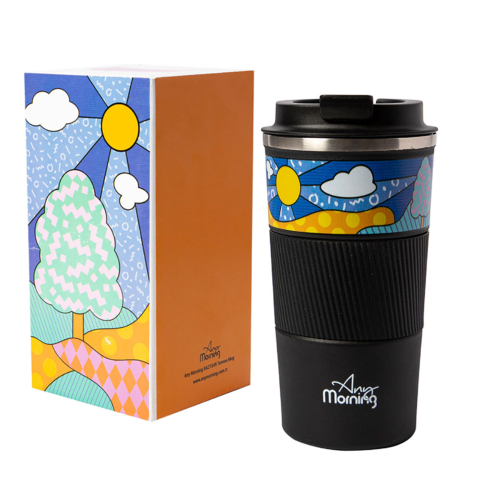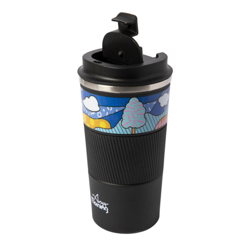 STAINLESS STEEL TRAVEL COFFEE MUG: Any Morning travel mug is made from pure 304 stainless steel. Dimensions: 7×3.5 in (17.5×9 cm) Capacity: 17-oz (500 ml).