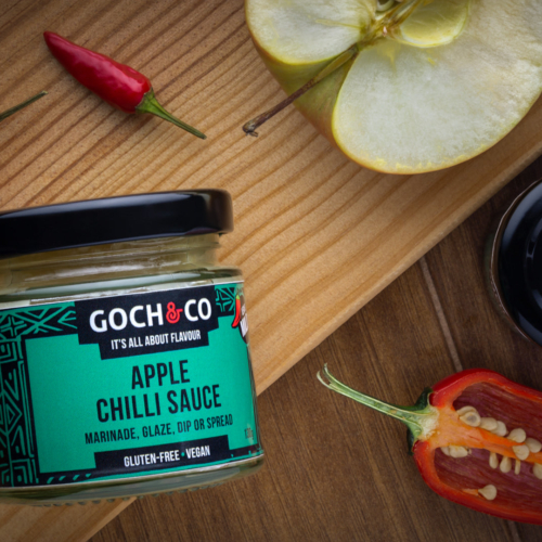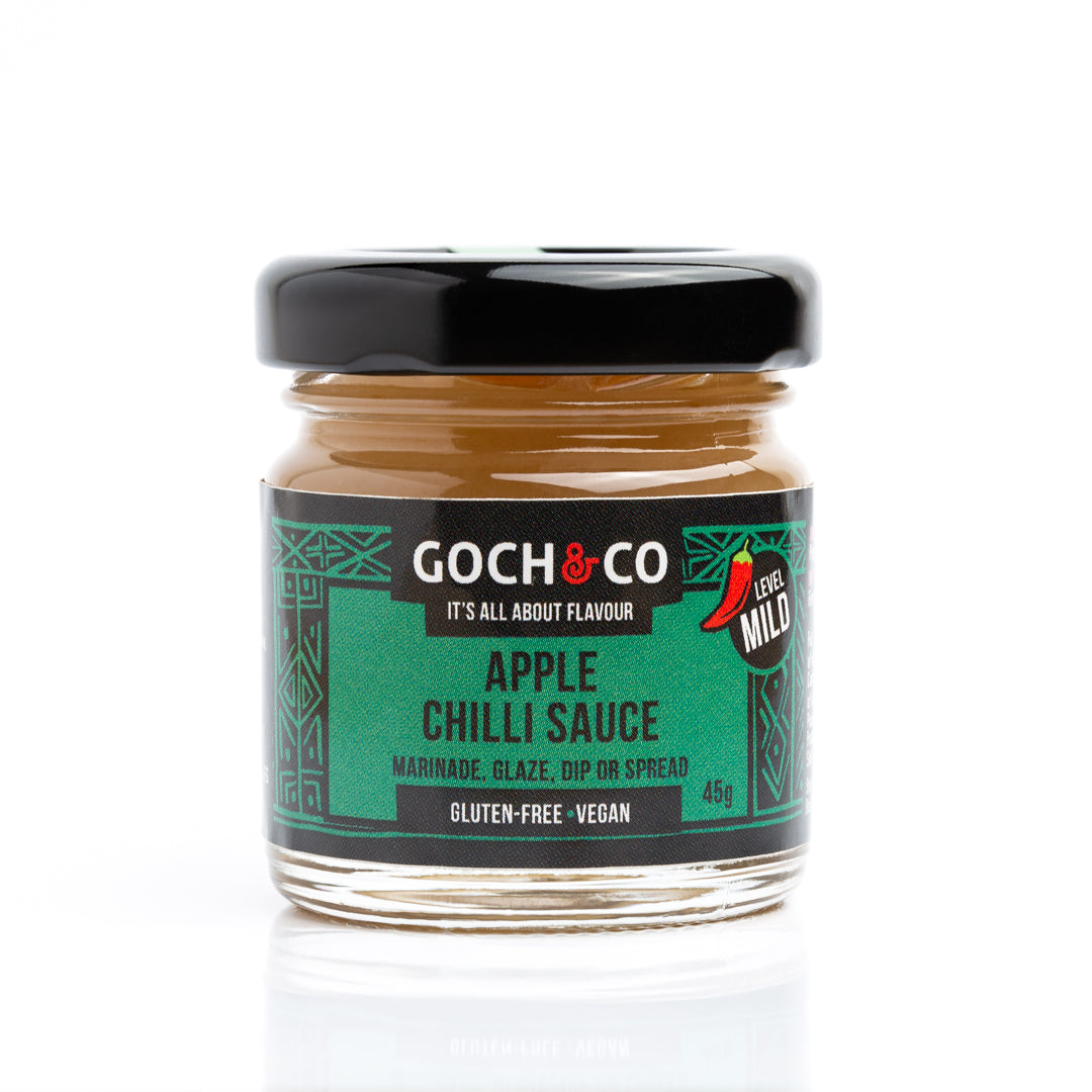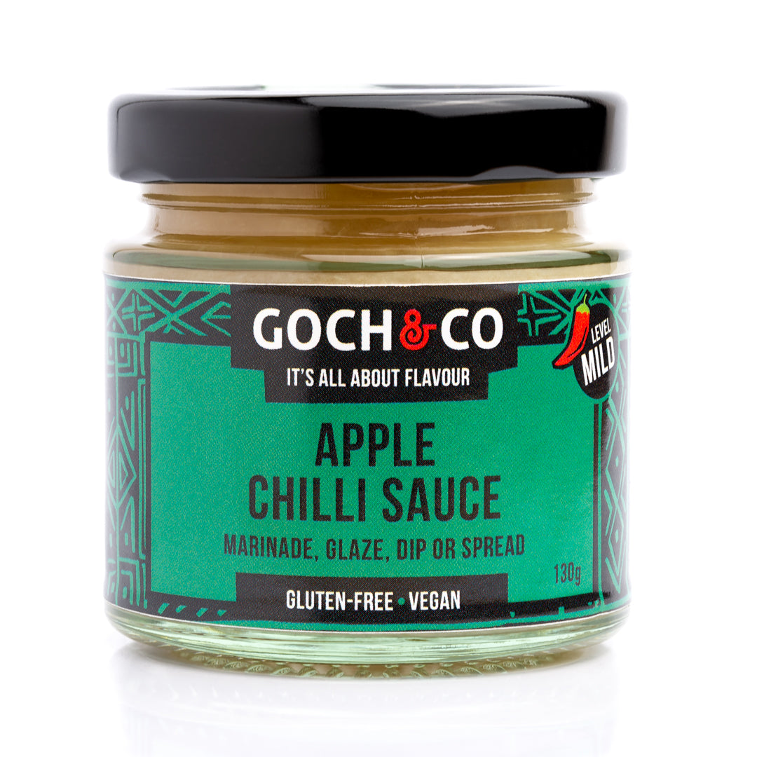 Apple Chilli Sauce A mild, well-balanced, smooth, velvety tasting sauce, with a light sweet flavour and tangy notes. Great as a spread, glaze, dip, and condiment. Simply delicious on eggy toast, with game and pulled pork, yogurt, desserts, cakes, muffins, and smoothies. Vegan. Gluten-free. No GM. No GMS. Vegetarian. Vegan. No Artificial Additives. Recyclable pack. Made in Wales, UK. Heat Level: Mild Servings per 100g: 20 Each Serving: 5g Ingredients: Apples (98%), Chilli Peppers, Sugar. Allergen Advice: For Allergens, including cereals containing gluten, see ingredients in BOLD. Nutrition: Typical Values 100g contains: Energy 174Kj/41Kcal Fat 0.1g of which Saturates 0g Carbohydrates 9.1g of which Sugars 8.6g Fibre 2.5g Protein 0.5g Salt 0g Country of origin: Wales, United Kingdom. Storage: Store in a cool and dry place.