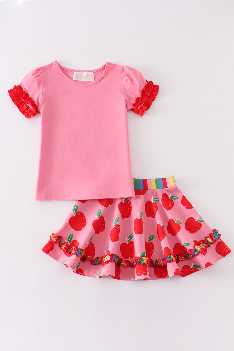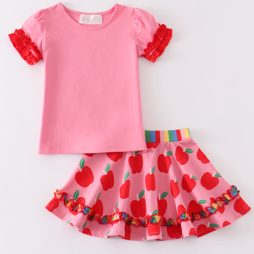 Get ready to pick some apples with this adorable skirt set for girls! Featuring a playful apple print, this set is perfect for any little fashionista. With a comfortable fit and unique design, it’s the perfect addition to any wardrobe. Don’t miss out on this fun and stylish set! 95% Cotton 5% Spandex S24H045