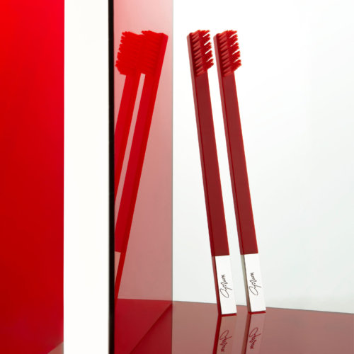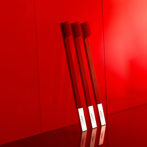Thanks to its patented silhouette and matte surface, the toothbrush fits comfortably in hand and uses 30% less material than conventional toothbrushes.