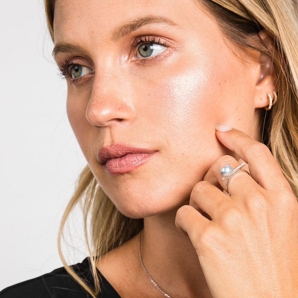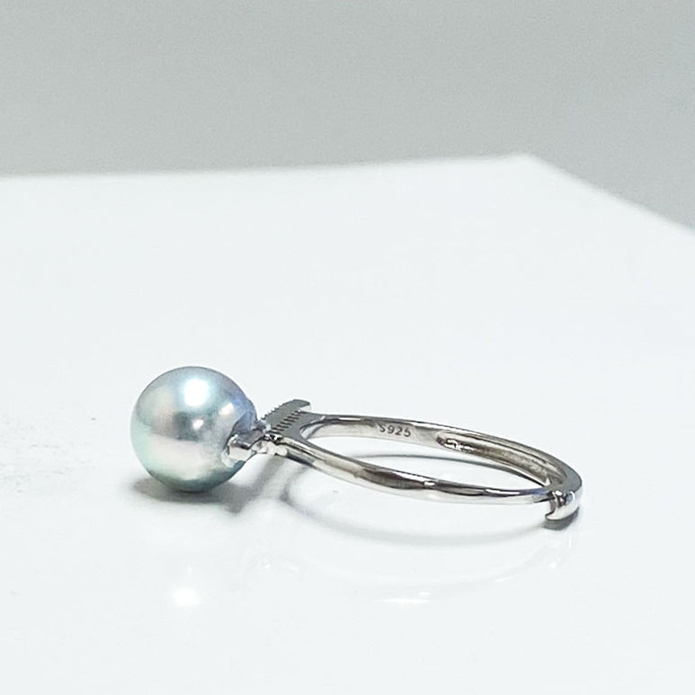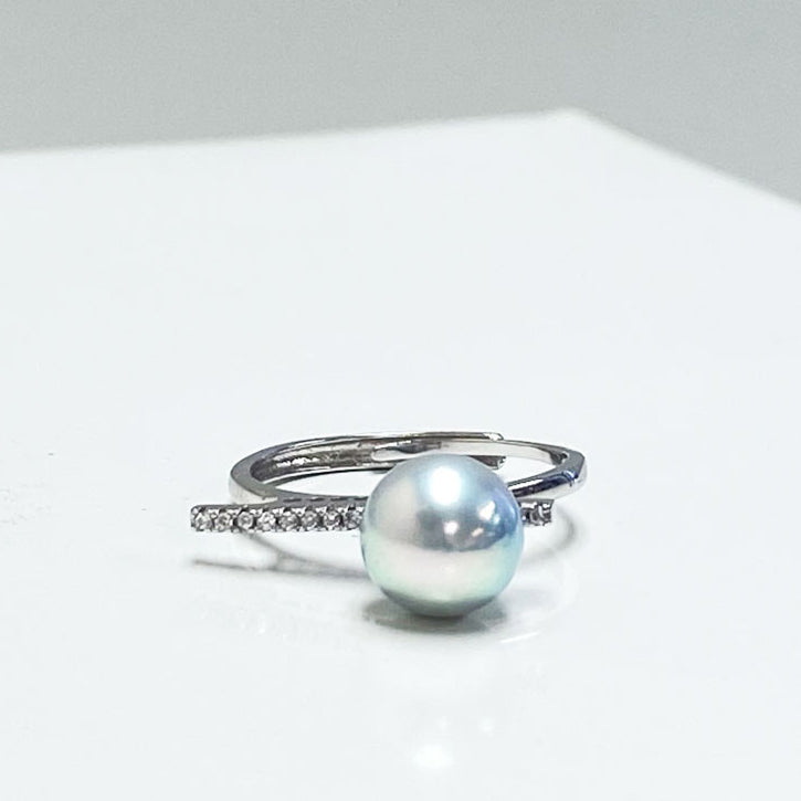 Our Akoya Pearl straight line Ring features a captivating blue-grey pearl adorned by an array of white and brilliant stones. product detailsProduct Type: Ring (adjustable)Product Measurements: 1.56″ X 1.17″Pearl Type: Akoya PearlPearl Size: 8.4mmPearl Color: silvery blueMetal Type: S925 Stone Type: Zircon Akoya Cultured PearlsAkoya pearls, the first cultured pearl production pioneered by Mikimoto Kōkichi, their body color range from white, silvery blue-grey, cream to pink. They are often complimented by a rose or ivory overtone. Pearl Care & Additional Information