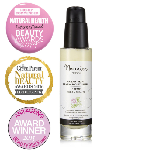 Description Our Ultimate Daily Hydration Solution Experience the luxury of deeply nourished, youthful-looking skin with our clinically proven daily moisturiser. Formulated combining potent ingredients to deliver unparalleled hydration and anti-ageing benefits.Key Features:Hydration Boost: Clinically proven to increase skin hydration by 25% for a full 24 hours, our moisturiser is a powerhouse of hydration. Say goodbye to dryness and hello to supple, moisturised skin that lasts all day.Premium Ingredients: Enriched with omega-rich argan oil, collagen-boosting tripeptides, and antioxidant vitamin E, our formula works tirelessly to nourish, smooth, and firm your skin. Rejuvenating Blend: Experience the rejuvenating benefits of frankincense, myrrh, and borage oils. These precious oils work in harmony to rejuvenate your skin, leaving it feeling revitalised and refreshed.Optimised Hydration: Our formula features the remarkable rose of Jericho, renowned for its ability to optimise hydration and strengthen skin cells for improved elasticity, reducing fine lines and wrinkles for a more youthful appearance.Soothing Relief: Designed to soothe and quench even the driest of skin, our moisturiser immediately replenishes skin’s moisture by an impressive 80%, leaving your complexion plump, firm, and radiant.Suitable for All Skin Types: Whether your skin is dry, oily, or somewhere in between, our daily moisturiser is suitable for all skin types 85% organic FREE wooden spatula option to ensure you can get those last few drops of goodness. *Limited to one per order Awards: Highly Commended as Best Anti-Ageing Range – Natural Health Magazine International Beauty Awards 2019 Editor’s Pick – The Green Parent Natural Beauty Awards 2016 Winner as Best Anti-Ageing product – The Beauty Bible Awards 2015 Nourish London skincare formulations are 100% vegan, made with natural organic ingredients, alcohol (ethanol) free & cruelty-free. https://youtu.be/3RdWUaHyxWw
