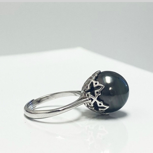 This captivating Tahitian pearl ring features a unique Tahitian cultured pearl embraced by an intricate design made of sterling silver almost as if this royal pearl was wearing a crown. product detailsProduct Type: Ring (adjustable)Product Measurements: 1.14″X 1.60″Pearl Type: Tahitian PearlPearl Size: 12.2mmPearl Color: Black with Green overtoneMetal Type: S925Stone Type: None Tahitian Cultured PearlsTahitian cultured pearl or black pearls, don’t just come in the colors of grey, black and brown, in fact, they will almost certainly display blue to green, copper, purple, yellowish green or pink overtones. In the pearl industry, the term “pistachio”, “aubergine”, or “peacock” is often used to vividly describe the Tahitian pearl color. Pearl Care & Additional Information